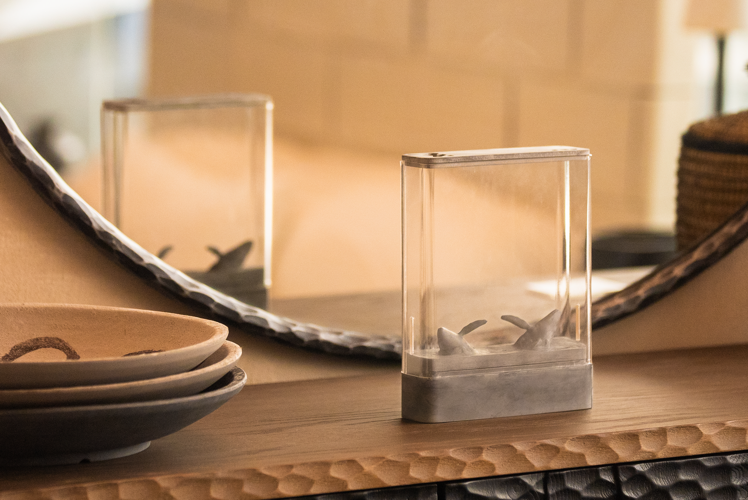 CloudZen is a tabletop meditative sculpture featuring a unique multi-sensory interaction system. Drifting incense trails, light, and scent come alive as visible anchors, guiding your mind with every breath into calm and focus.